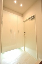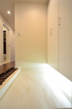 白基調の清潔感のある玄関ホールは廊下へ一直線でないため、プライバシーが守られています。