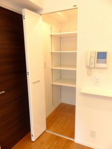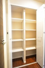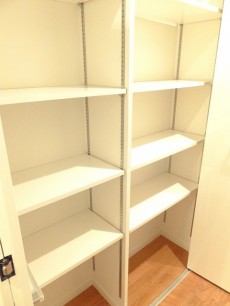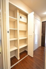 キッチンカウンターの奥には奥行きたっぷりの収納棚があります。