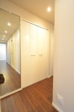 途中には姿見鏡と収納スペースが並んでいます。