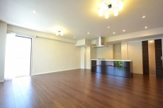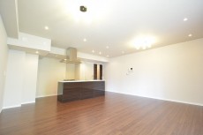 こちらは約20.5帖のリビング・ダイニング・キッチンです。二面採光で明るさと広さを両立した居心地の良い空間です。