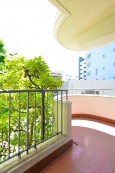 半円のふくらみが印象的なバルコニー。