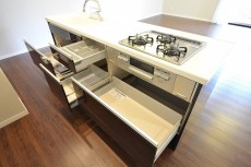 キッチンは3口ガスコンロ、蛇口一体型浄水器水栓等充実しており、食器洗浄乾燥機も取り付け可能です。(別途費用)