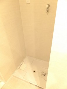 洗濯機置場は棚の正面にあります。こちらには棚はありませんので、先程の棚を有効活用してくださいねっ!!