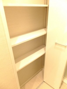 洗面台の隣りには収納棚があります。