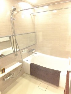 バスルームは全体的に白基調で清潔感がある室内です。