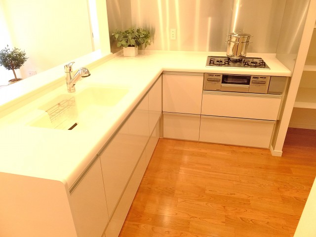 キッチンはとっても使いやすいL字型。作業台が広いので、このキッチンならいろんなお料理にチャレンジできますねっ(*^。^*)