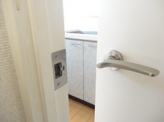 洗濯機置場はトイレのすぐお隣。扉がついているので使わない時は閉めて生活感も隠しておけます。