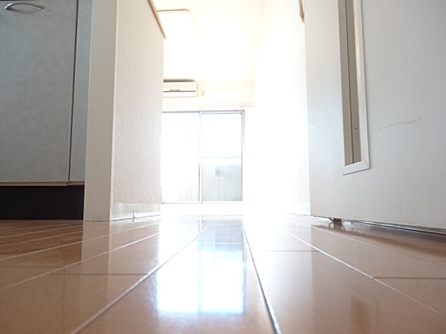 廊下は内廊下。おとなりとのドアの距離が近いので、玄関前は少し窮屈な感じがするかも・・・。