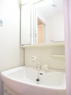 洗面化粧台は鏡の両脇の裏にハブラシや小物が収納できるようになっています。