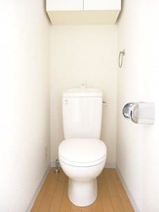 トイレはリビング入口の手前に位置しています。トイレットペーパーのストックを入れておくのに便利な吊戸棚付き。