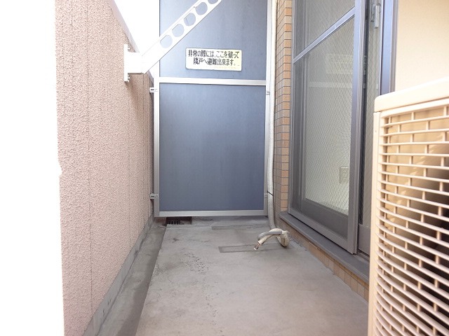 最後にリビングからバルコニーに出てみます。ほぼ西向き、約2.64㎡。