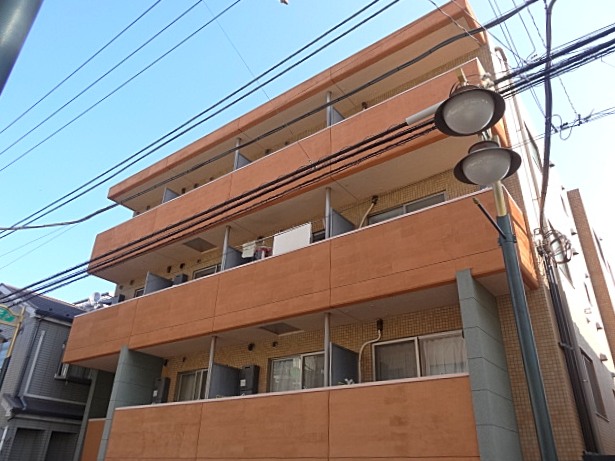 4階建て総世帯数19戸。あたたかみのあるオレンジブラウンの外観です。