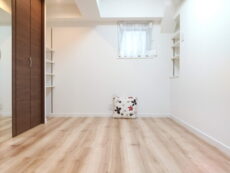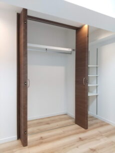 隣の洋室より僅かに小さめですがその分収納が豊富!クローゼットに加えオープンタイプの棚が二つも付いています。棚の高さの調節が可能なので、入れるものに合わせてカスタマイズして使いましょう!