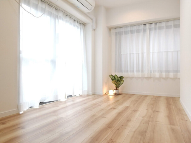 南・西に窓がある二面採光のお部屋です。残念ながら、西側には高い建物が建っているので西向き窓からの陽射しはあまり期待出来ません。とはいえ南向きの窓がありますし、距離があるので風通しは良好!やっぱり壁とは解放感が違いますよ。クローゼット付き。
