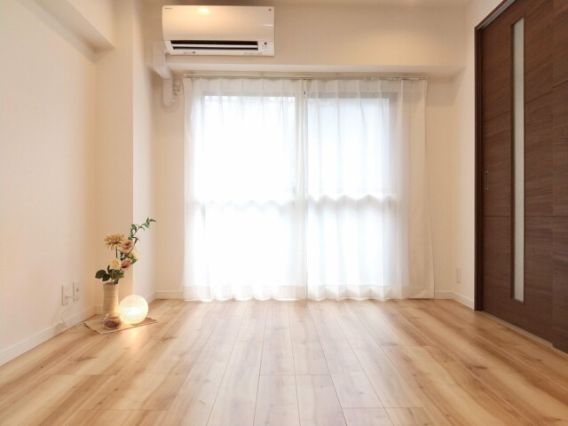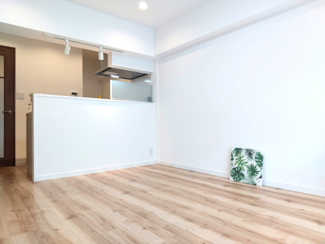 南向きバルコニーに面した明るいお部屋です。木目と白のナチュラルな色使い。合わせるカーテンや家具などのインテリアも幅広く選ぶことが出来そうです。