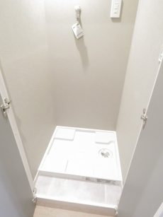 廊下へ出てすぐ左側の観音開きの扉の中は洗濯機置場になっていました。