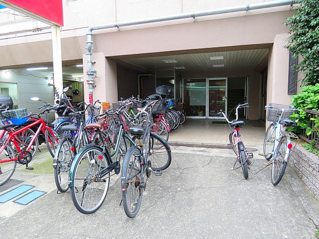 マンション前は駐輪スペースになっているようです。