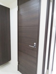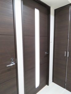 白っぽいフローリングと落ち着いた色合いの建具でアーバンな雰囲気ですね。