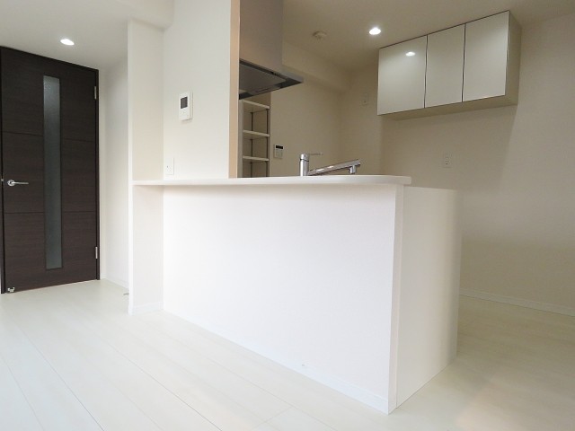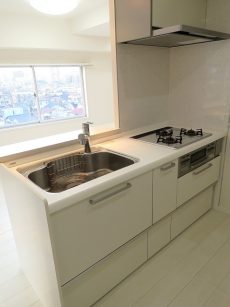 キッチンも壁面も白基調。手元が明るくなってお料理がしやすそうです(´▽`人)
