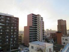 左右も同じ感じで高いマンションが点々と建つ風景です。