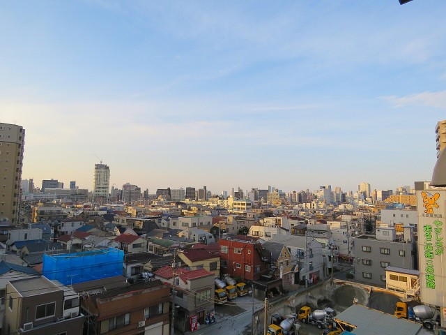眺望です。第二京浜をはさんでマンションやビルが立ち並ぶ風景です。