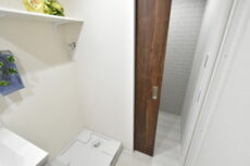 こちらには洗面台、洗濯機スペース、トイレ、浴室がまとまっています。