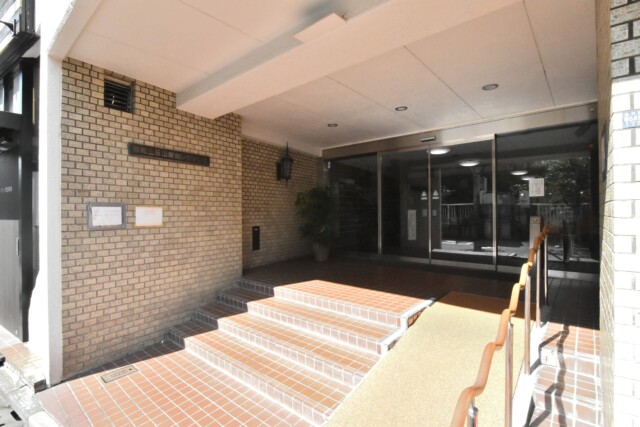 こちらがエントランス。階段横には斜路も設けられ、バリアフリーにも配慮されています。夜間はオートロックで防犯面も安心!