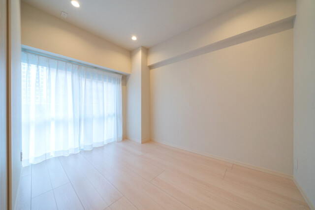 こちらは約5.0帖の洋室2です。バルコニーへ出入りできる大きな窓が付いており、室内に自然な明るさと風を取り込める快適な空間です。