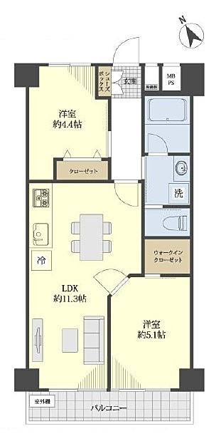 今回ご紹介するお部屋は5階、専有面積48.50㎡の2LDK。おひとり暮らしやDINKSの方にお勧めのお部屋です。