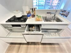 収納もたっぷりでキッチンまわりがスッキリ保てそうです◎みんなの憧れ食器洗浄乾燥機!!!誰だってお腹一杯で幸せな時に洗い物なんてしたくないですよね。空いた時間はみんなでのんびり過ごしましょう♬