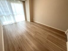 隣の洋室と同じ南向きバルコニーに面したお部屋です。メインの寝室に良さそうですね。たっぷりとしたスペースがあり、大きなサイズのベッドやシングル2台も大丈夫。窓にはペアガラスを使っていて防音性や遮熱性も高くなっています。