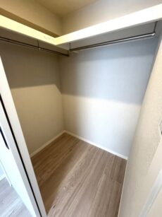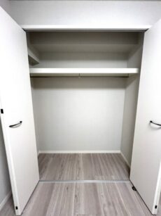 奥行き、高さともにしっかりと確保されたクローゼット。間口が広く使い勝手ではウォークインクローゼットにも負けていません。