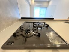 コンロは3口、グリルも付いています。魚イメージが強いグリルですが、肉でも野菜でもどんなお料理でも活躍出来るんですよ。ガスの直火なら、何を焼いても美味しいこと間違いなしです♬