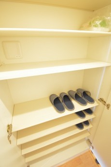お隣のオープンシェルフと合せれば靴から日用品のストックまでまとめて保管できそうです。
