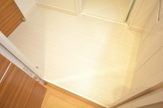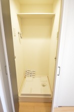 ダイニングキッチンの入口スペース横には扉のついた洗濯機置場と