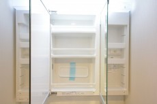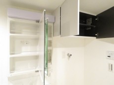 洗面化粧台は3面鏡の裏が一面収納になってます。