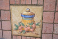 階段のところ、よーく見ると手書きタッチの絵が入ったタイルが貼られていて