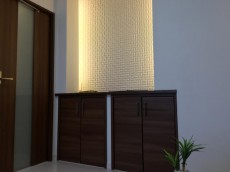 入口左手には、ロータイプのキャビネットがあります。上の部分はカウンターになっていますので、ステキなインテリアを飾ってください(´∀`*)