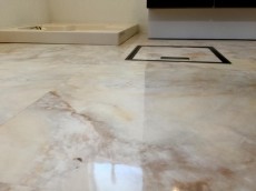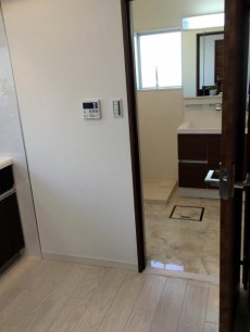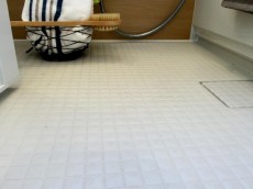 サニタリールームの床は、お掃除楽ちんの大理石調♪♪
