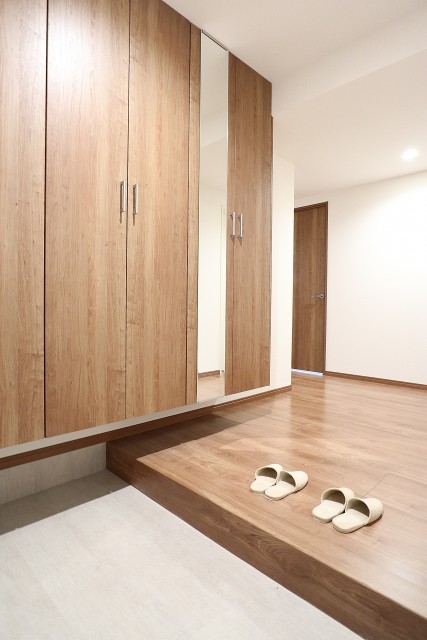 玄関を入ると、シューズインクローゼットがありました。大容量なので、ご家族全員の靴を入れてもまだまだ収納できそうです☆