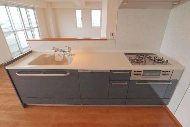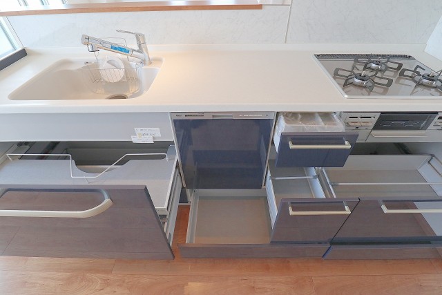 浄水器付の水道に、大容量収納、食洗機に3口コンロ(#^.^#)