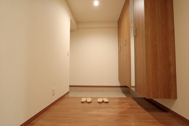 玄関はL字になっているのでドアを開けてもお部屋が見える事はありません。