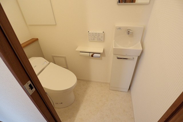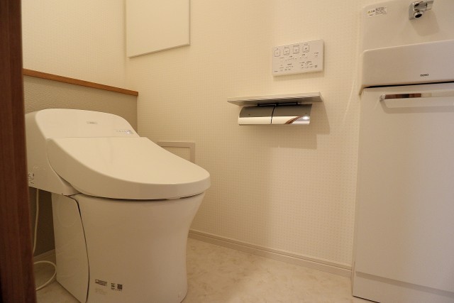 タンクレスタイプのウォシュレット機能付きトイレです。