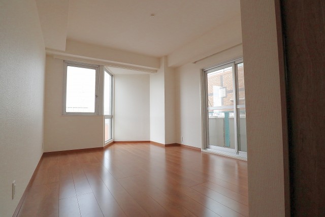 北側の窓はバルコニーになっています。すぐお隣のマンションと隣接していましたが、目の前に窓はないので、「コンニチワ」状態にはならなくて済みそうですね(^v^)