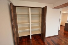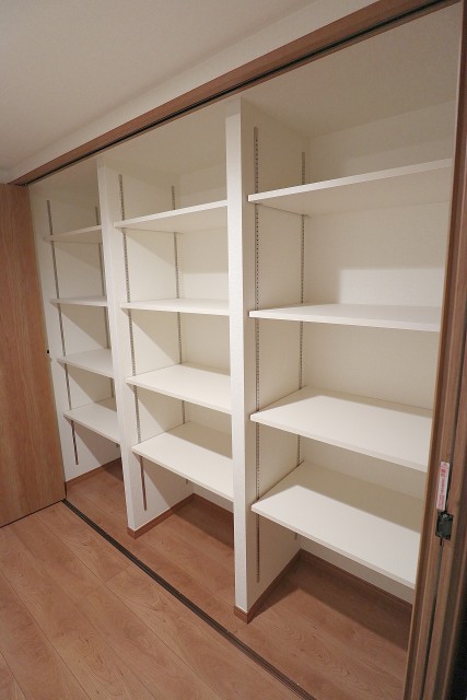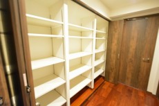 左に行くとまず目に飛び込んでくるのが、左側壁一面の大きな大きな収納棚!!
