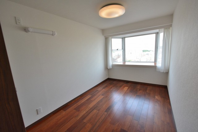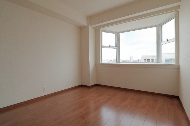 隣の部屋は6.4帖の洋室です。窓は西向きに付いていますが、出窓なので、南からの明るい陽射しも入ってきますよー☆