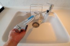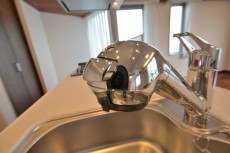 水栓は浄水機能付き。シャワーヘッドになっているのでシンクの隅々まで水を流すことが出来ますよ。洗い物の際などには大活躍してくれることでしょう!
