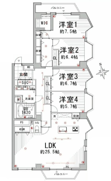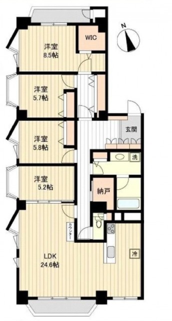 広々128.85㎡の4LDK。東南角部屋なので明るさ◎です!!