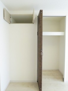 こちらの洋室には奥行のあるクローゼットと上の方に奥行のある物入れがつくられています。もう1部屋の洋室にもクローゼットがあるので片方を掃除機や日用品のストック置場にするのもいいかも・・・。