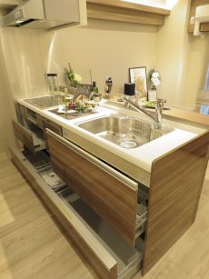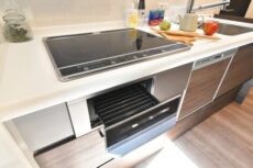 キッチン設備は3口IHコンロ、グリルに浄水器一体型水栓や食洗機も付いていて充実しています。